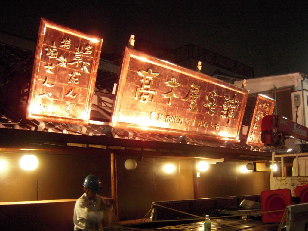 木彫り看板格子浮かし設置